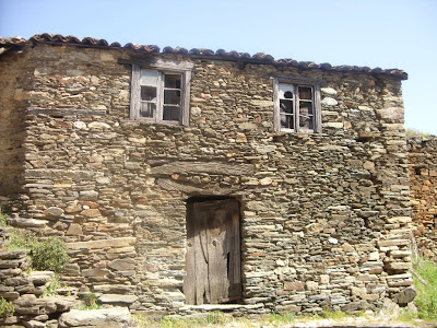 Nesta terra achei curiosa a construção da imagem. Com a empena virada à estrada, possui um amplo telhado de duas águas.